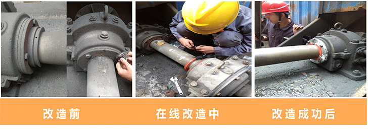 項目簡(jiǎn)介:山東兗礦鮑店煤場(chǎng)吸風(fēng)機采用油浴潤滑方式,原裝密封為毛氈密封+迷宮密封,因密封失效導致現場(chǎng)泄漏非常嚴重。泄漏問(wèn)題不僅導致現場(chǎng)環(huán)境污染嚴重,操作維護工作量增加,而且增加了油耗,大大增加了設備運行成本。該問(wèn)題一直是制約離心式通風(fēng)機安全、連續、平穩運行的一大障礙!針對上述情況,我公司技術(shù)人員經(jīng)過(guò)現場(chǎng)調研、測繪,結合我公司自主研發(fā)生產(chǎn)的擁有完全自主知識產(chǎn)權的DSF系列密封產(chǎn)品,提出了DSF-A型自定位剖分式骨架油封解決方案,該方案可在不拆除設備部件、不改變設備結構的前提下在線(xiàn)安裝,結構設計以及專(zhuān)業(yè)的產(chǎn)品加工工藝確保產(chǎn)品密封不漏。此方案一經(jīng)實(shí)施,設備運轉正常,現場(chǎng)滴油不漏!