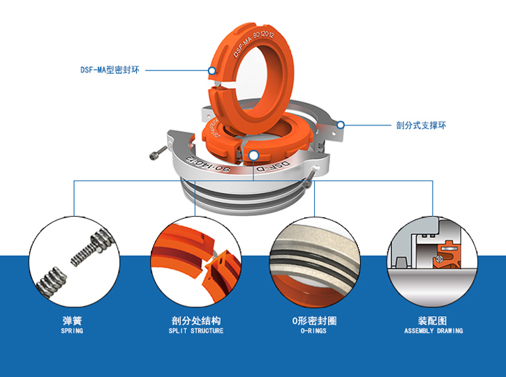 新置DSF系列密封均為實(shí)用型產(chǎn)品,開(kāi)口不漏、在線(xiàn)安裝;同行仿品只能做到外形相似,而不能實(shí)際解決工況漏油問(wèn)題